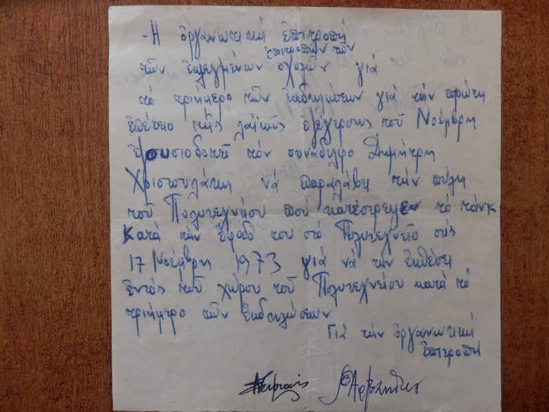 17 Νοέμβρη 1973 - “Τα τσαλακωμένα σίδερα θα θυμίζουν στους αιώνες τη δύναμη της αντίστασης και το χρέος για την Ελευθερία”