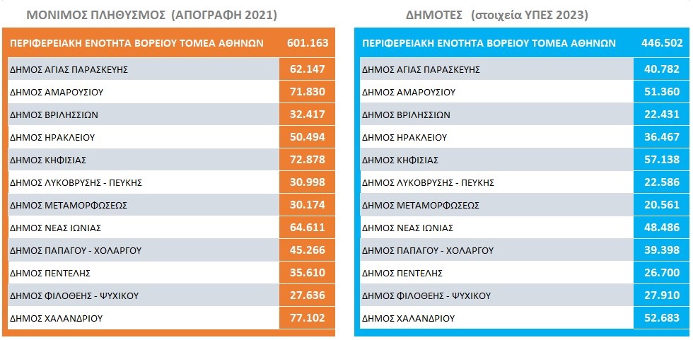 Μερικά στοιχεία για την Περιφερειακή Ενότητα Βόρειου Τομέα Αθηνών