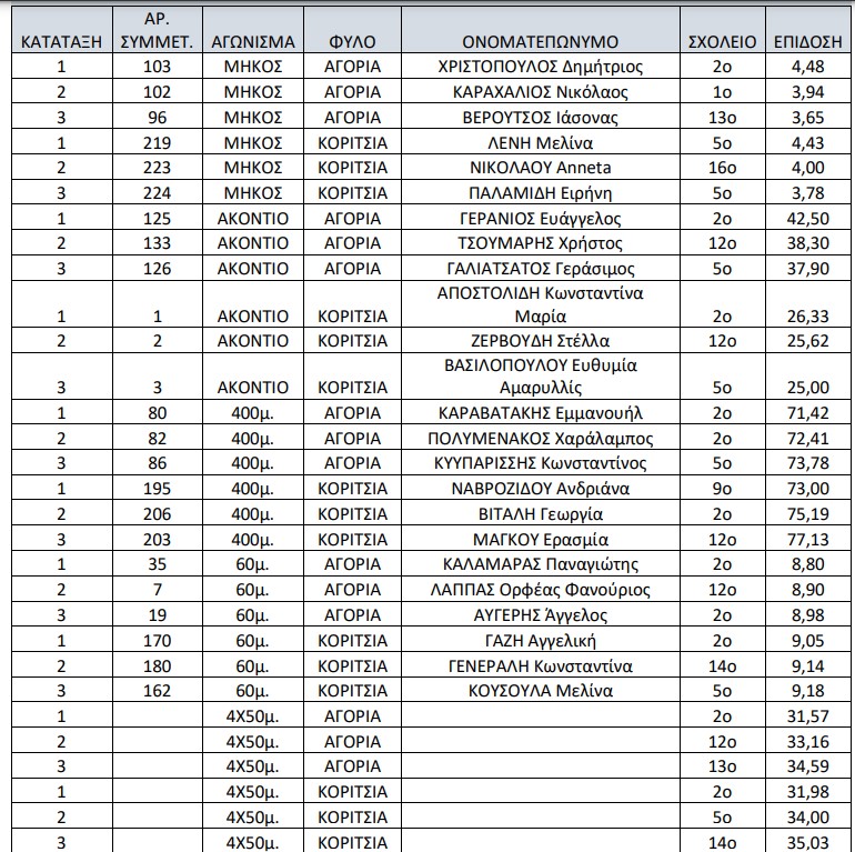 Οι αγώνες έγιναν στο δημοτικό στάδιο «Νίκος Πέρκιζας» και χάρισαν σπουδαίο θέαμα και επιδόσεις σε όσους τους παρακολούθησαν, με τους μαθητές/τριες να δίνουν τον καλύτερο εαυτό τους.