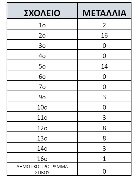 ΜΕΤΑΛΛΙΑ ΑΝΑ ΔΗΜΟΤΙΚΟ ΣΧΟΛΕΙΟ