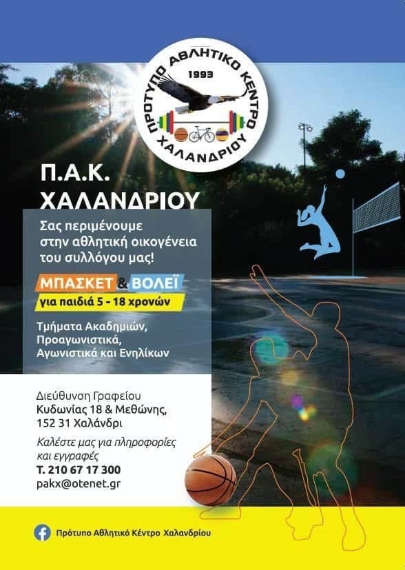 Ξεκινούν οι εγγραφές στο ΠΑΚ Χαλανδρίου – Μπάσκετ, βόλεϊ και άρση βαρών για αγόρια και κορίτσια