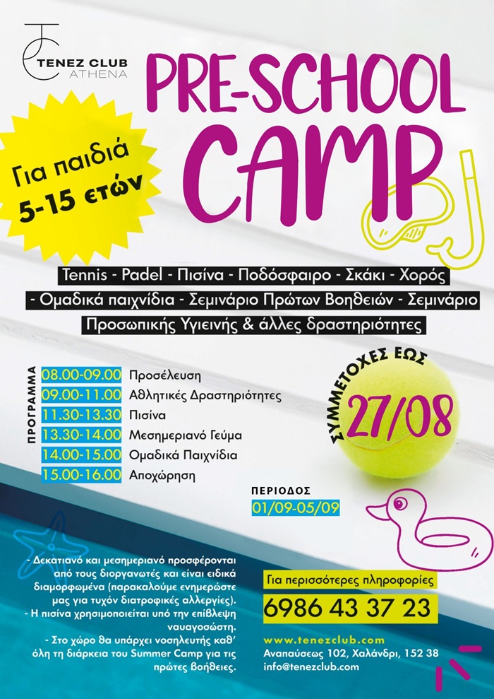 PRE-SCHOOL CAMP στον αθλητικό πολυχώρο Tenez Club Athena, στο Χαλάνδρι