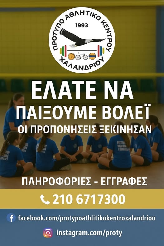 📞 Για πληροφορίες και εγγραφές επικοινώνησε με μήνυμα στη σελίδα μας στο Facebook Πρότυπο Αθλητικό Κέντρο Χαλανδρίου. ή στο τηλέφωνο 2106717300.