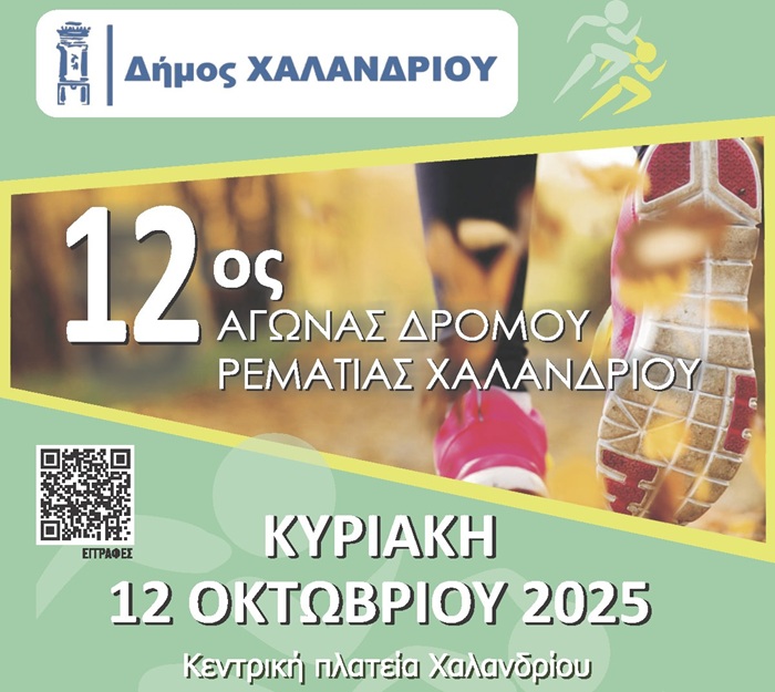 Για 12η χρονιά ο Δήμος Χαλανδρίου διοργανώνει την Κυριακή 12 Οκτωβρίου 2025 τον Αγώνα Δρόμου Ρεματιάς Χαλανδρίου. Τον μοναδικό ίσως αγώνα δρόμου εντός πόλης που διεξάγεται σε ένα πανέμορφο φυσικό περιβάλλον κατά μήκος της παραρεμάτιας ζώνης. Στη φετινή νέα διαδρομή του αγώνα οι συμμετέχοντες θα έχουν την ευκαιρία να γνωρίσουν νέες γειτονιές της πόλης και τα σημαντικά έργα ανάδειξης του Αδριάνειου Υδραγωγείου.