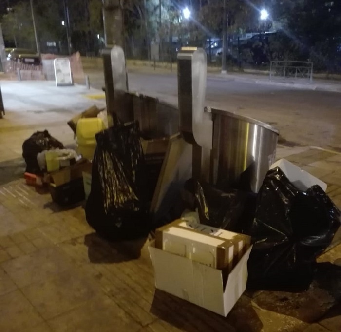 Άσχημη εικόνα τα σκουπίδια στην κεντρική πλατεία Χαλανδρίου