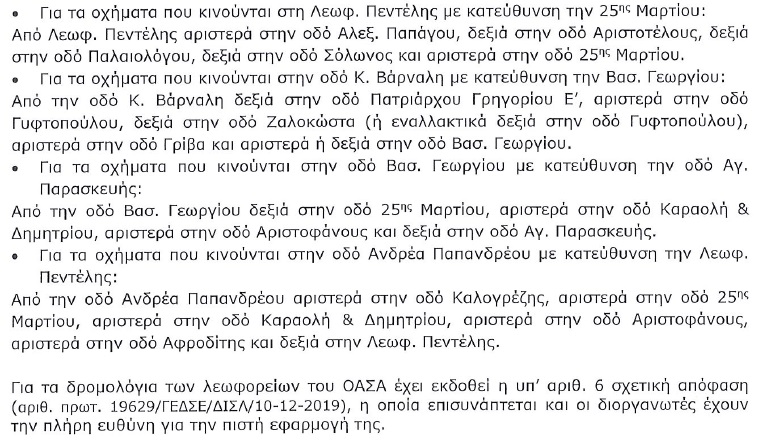Η κίνηση των οχημάτων θα διεξάγεται ως εξής: