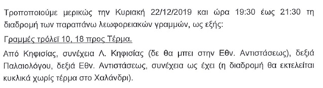 Την Κυριακή 22 Δεκεμβρίου 2019 κατά τις ώρες 19:30 έως 21:30, λόγω διεξαγωγής του 1ου Νυχτερινού Αγώνα Δρόμου Χαλανδρίου "Chalandri Run the Christmas Night", θα πραγματοποιηθούν κυκλοφοριακές ρυθμίσεις καθώς και τροποποιήσεις λεωφορειακών γραμμών όπως παρακάτω: