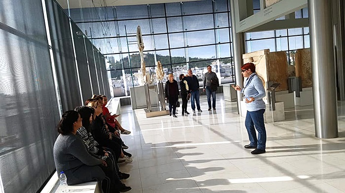 Γυναίκες Ρομά ξεναγούνται, τον Νοέμβριο του 2018, στο Μουσείο της Ακρόπολης, στο πλαίσιο των δράσεων κοινωνικής ένταξης του Κέντρου Κοινότητας-Παράρτημα Ρομά του Δήμου Χαλανδρίου