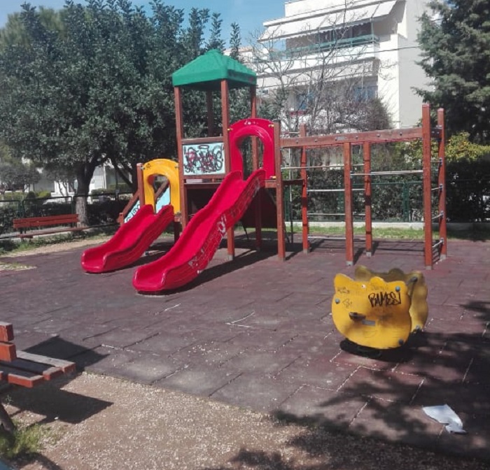 Εικόνες από την παιδική χαρά στην κεντρική πλατεία Χαλανδρίου