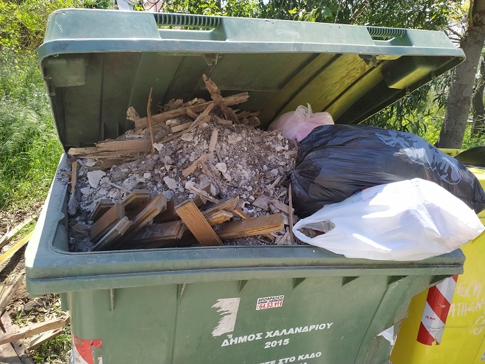 «Παρά τις ανακοινώσεις του Δήμου, παρά τις ανακοινώσεις του αρμόδιου Υπουργείου, η εικόνα της πόλης μάς υποχρεώνει να κάνουμε νέα έκκληση στους κατοίκους της να μην βγάζουν ογκώδη αντικείμενα και κλαδέματα στον δρόμο και να μην τοποθετούν μπάζα και άλλα βαρέα υλικά εντός των κάδων. Για λόγους δημόσιας υγείας παρακαλούμε να περιοριστούν σε κάθε νοικοκυριό οι δραστηριότητες που παράγουν αυτούς τους ρύπους, ώστε η Διεύθυνση Διαχείρισης Απορριμμάτων να κάνει απερίσπαστα το έργο της στην οδοκαθάριση, την αποκομιδή των κάδων, στις απολυμάνσεις δημόσιων χώρων, κοινωνικού εξοπλισμού, χώρων συνάθροισης κοινού και κάδων», σημειώνεται στη σχετική ανακοίνωση της Διεύθυνσης Διαχείρισης Απορριμμάτων και Ανακύκλωσης του Δήμου Χαλανδρίου.