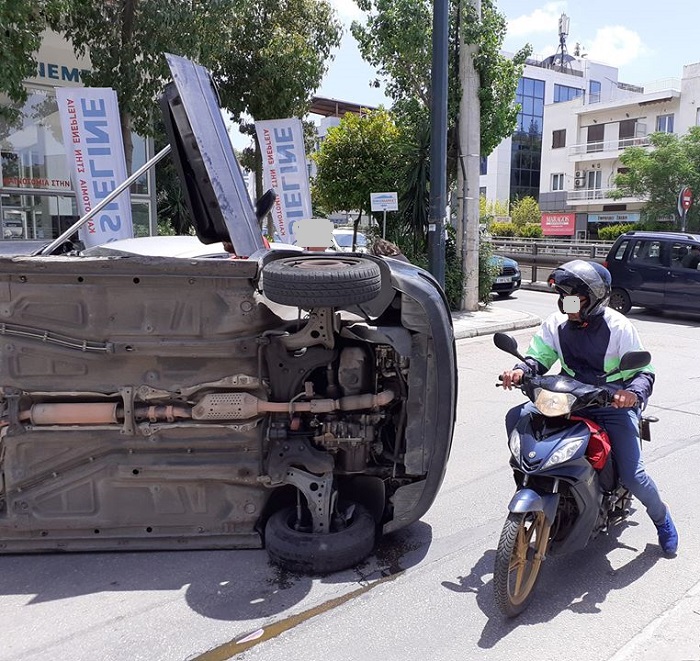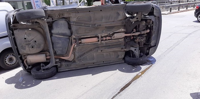 Αυτοκίνητο παραβίασε το STOP και συγκρούστηκε με άλλο Ι.Χ. Η σύγκρουση ήταν σφοδρή με αποτέλεσμα το ένα από τα δύο αυτοκίνητα να αναποδογυρίσει και να τραυματιστούν, σύμφωνα με πληροφορίες, τέσσερις επιβάτες.