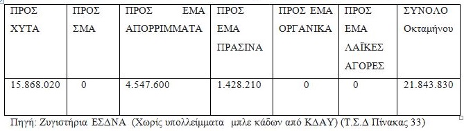 Ανακύκλωση: Έτη 2015 -2017 στόχος μ.ο 5.218 τ. Αποτέλεσμα μ.ο 2.500 τ. περίπου