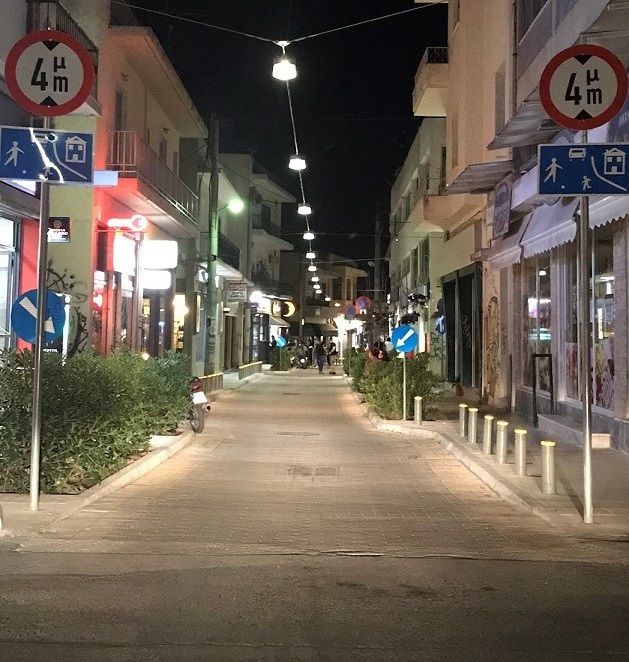 Μαζί με την καλαίσθητη διάστρωση του δρόμου με κυβόλιθους έγινε επίσης διαμόρφωση πεζοδρομίων πλάτους μεγαλύτερου από 1.5μ για την ασφαλή διέλευση των πεζών αλλά και την προσβασιμότητα των ΑμεΑ.