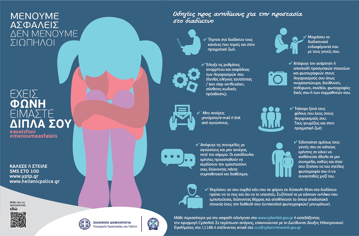 Οδηγίες προς ανηλίκους για προστασία στο διαδίκτυο