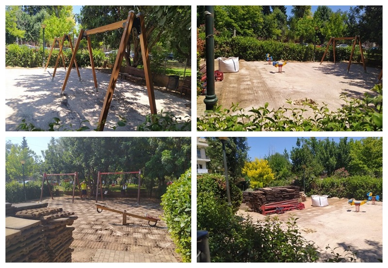Αυτή τη στιγμή εκτελούνται εργασίες σε δύο παιδικές χαρές, η πρώτη βρίσκεται στην οδό Παρνασσίδος και η δεύτερη επί των οδών Αργυροκάστρου & Μελιγαλά.