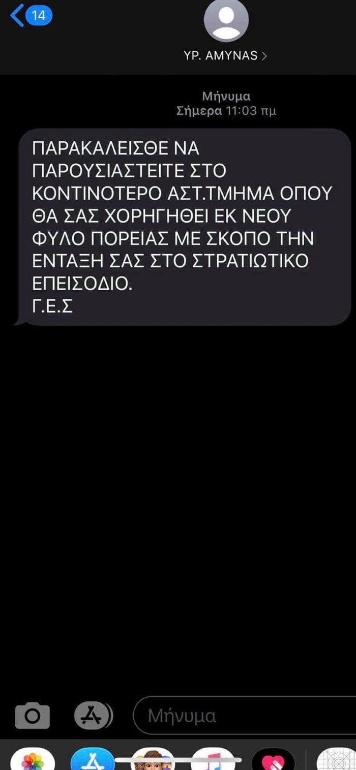 Από τη Διεύθυνση Δίωξης Ηλεκτρονικού Εγκλήματος της Ελληνικής Αστυνομίας διενεργείται έρευνα σχετικά με το παρακάτω μήνυμα (sms), που αποστέλλεται σε κινητά τηλέφωνα, καλώντας τους πολίτες να παρουσιαστούν στο κοντινότερο Αστυνομικό Τμήμα για δήθεν χορήγηση Φύλλου Πορείας από τοn Στρατό.