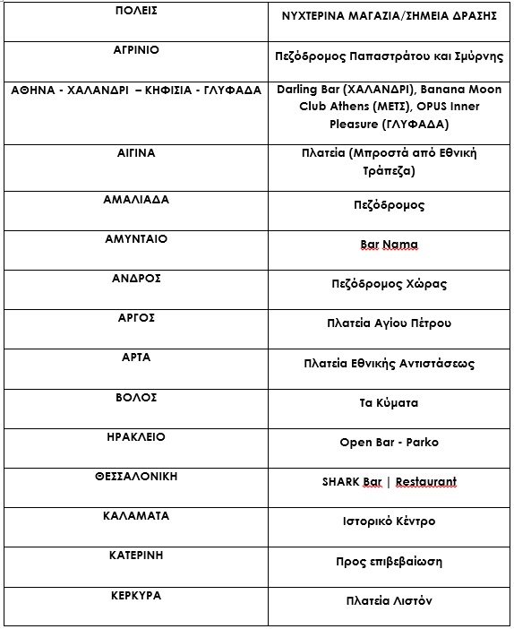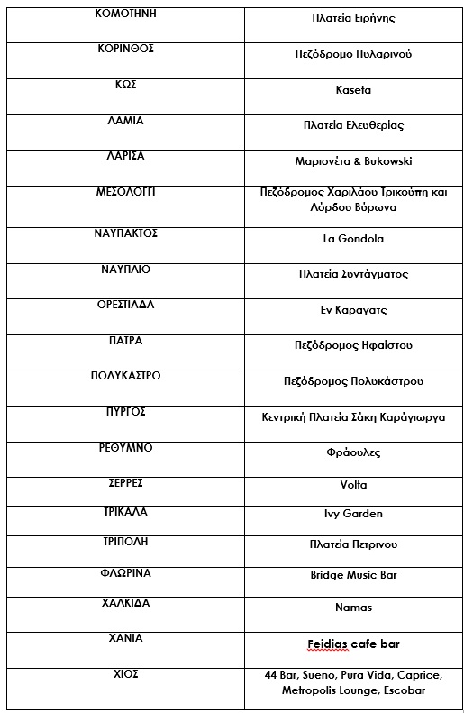 Οι πόλεις που συμμετέχουν και τα σημεία της δράσης για το 2020 είναι: