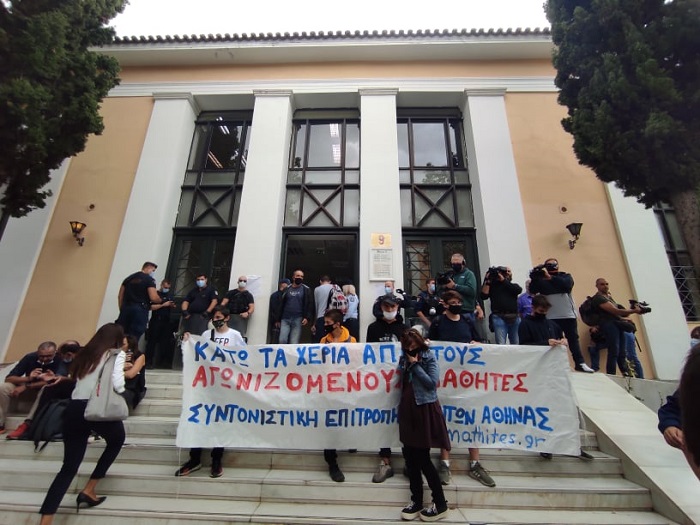 Σε εξέλιξη είναι η συγκέντρωση αλληλεγγύης στα Δικαστήρια της Ευελπίδων, για τον 14χρονο μαθητή του 7ου Γυμνασίου Χαλανδρίου -που κρατούνταν επί τέσσερις ημέρες στη ΓΑΔΑ, από την Πέμπτη 15 Οκτωβρίου, όταν συνελήφθη στη διάρκεια του μαθητικού συλλαλητηρίου.