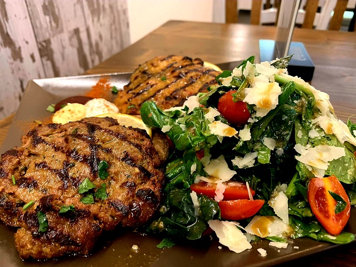 Οι φίλοι vegetarians δεν έχουν κανένα λόγο να μην το επισκεφθούν, αφού έχει υπάρξει μέριμνα και γι’ αυτούς, με επιλογές όπως τυλιχτό με καλαμάκι μανιταριών (μια αποκάλυψη!) ή μπιφτέκι λαχανικών, φρεσκοκομμένες πατάτες αλλά και δροσερές σαλάτες σε πολλές παραλλαγές, που θα ικανοποιήσουν και τους πιο απαιτητικούς (λατρέψαμε τη σπανακοτυροπιτοσαλάτα, τη ρόκα-ταλαγάνι με παντζάρια, κρουτόν, ντοματίνια, ταλαγάνι στη σχάρα και την πεντανόστιμη σως μελιού αλλά και το ντάκο για τη φανταστική του φέτα και την εύγεστή του κάπαρη).