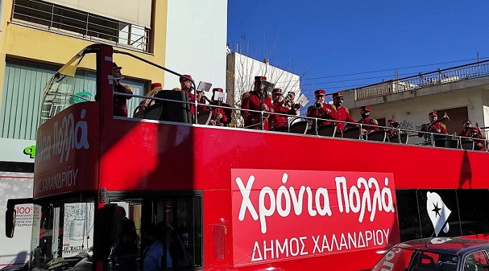 Κάλαντα και χριστουγεννιάτικες μελωδίες ταξίδεψαν στις γειτονιές του Χαλανδρίου, την παραμονή των Χριστουγέννων, με το λεωφορείο που μετέφερε μουσικούς της Φιλαρμονικής Ορχήστρας τους Δήμου.