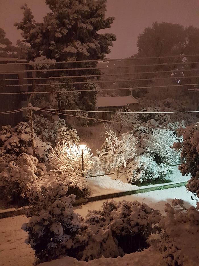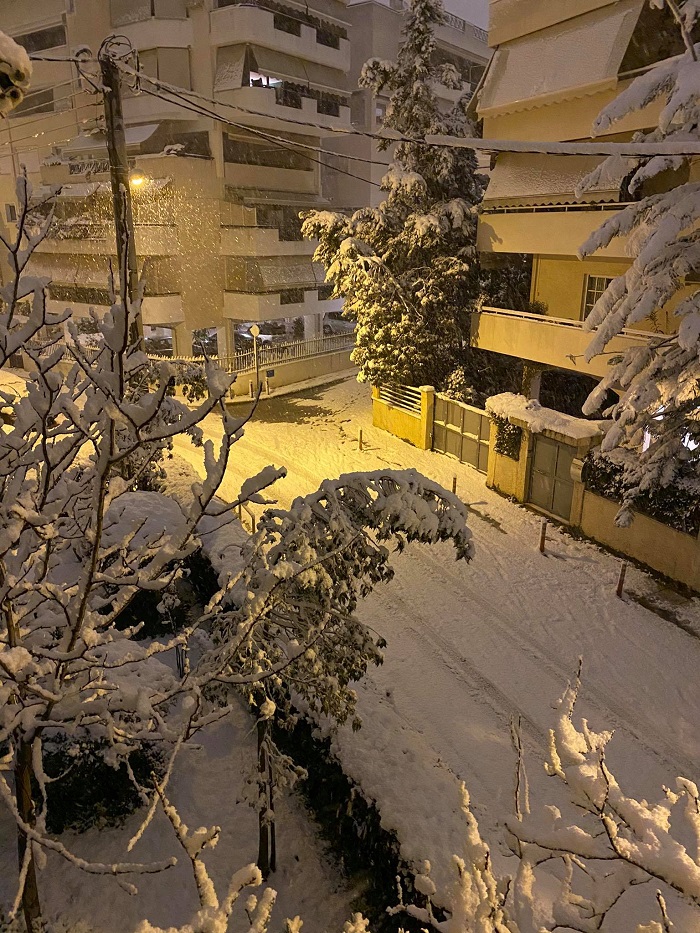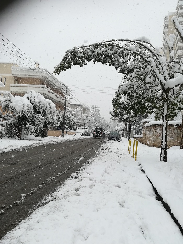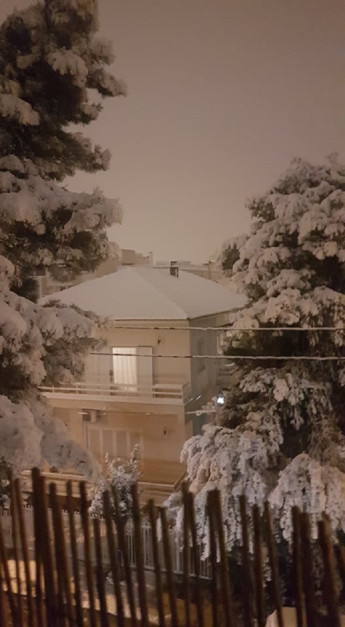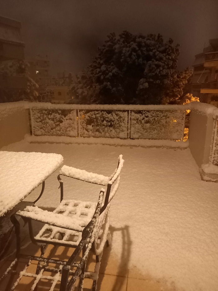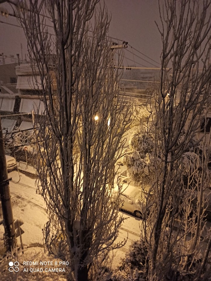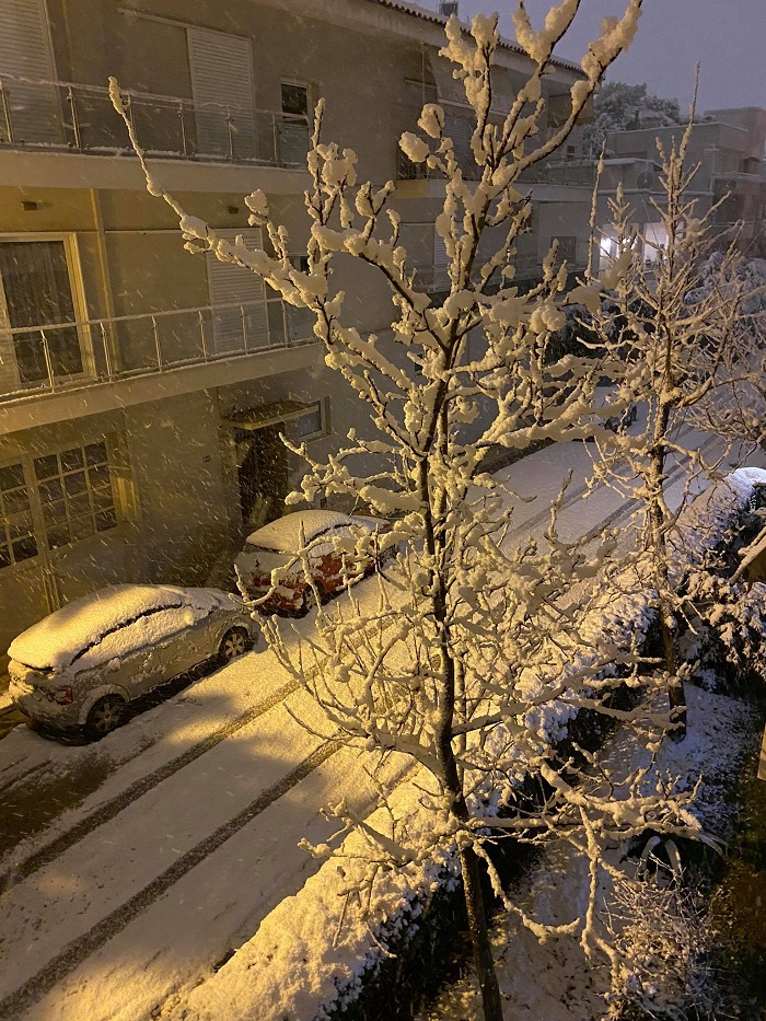 Νέα, πιο ισχυρή χιονόπτωση έχει ξεκινήσει εδώ και μία ώρα περίπου στo Χαλάνδρι. Το χιόνι πέφτει πυκνό και ήδη το έχει “στρώσει” στα πάρκα, τους δρόμους, τα δέντρα και τα αυτοκίνητα. Αποτελεί ίσως μια “χαρούμενη νότα” στις δύσκολες εποχές που βιώνουμε...