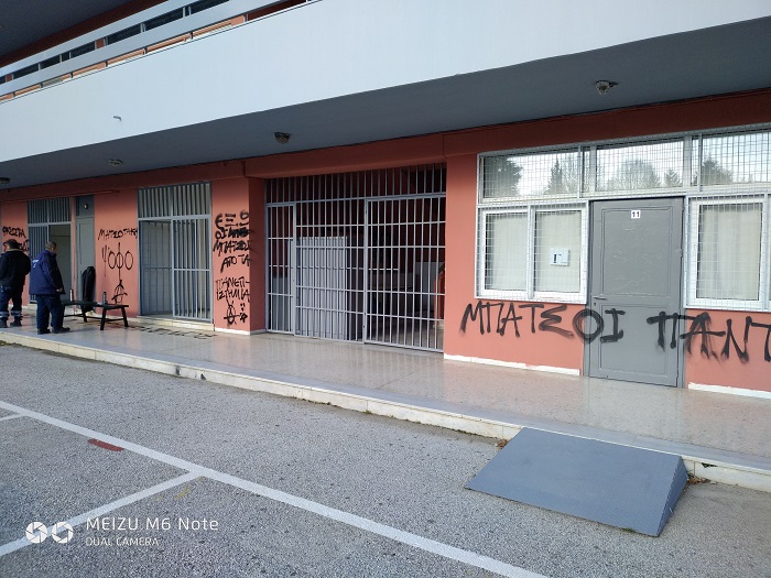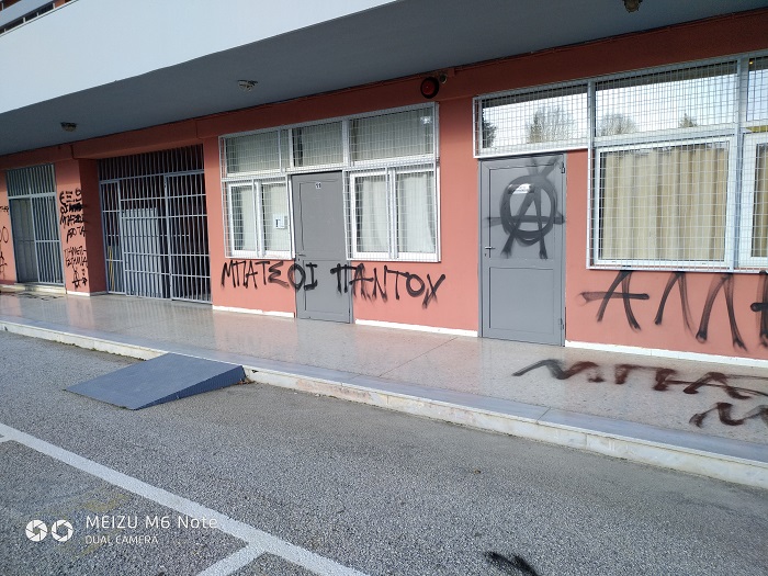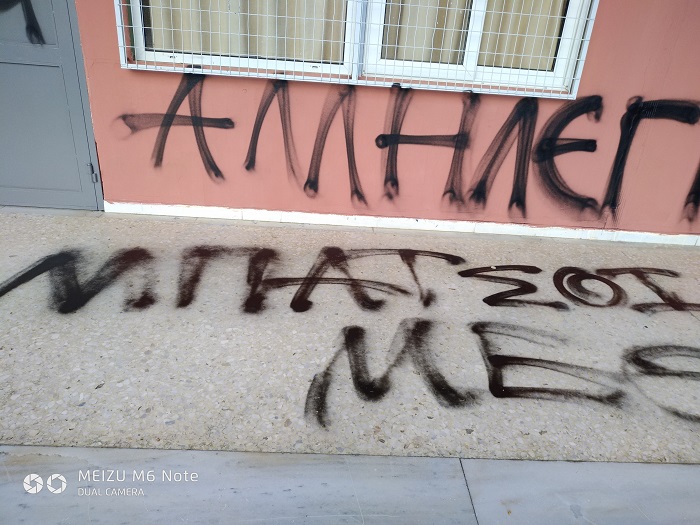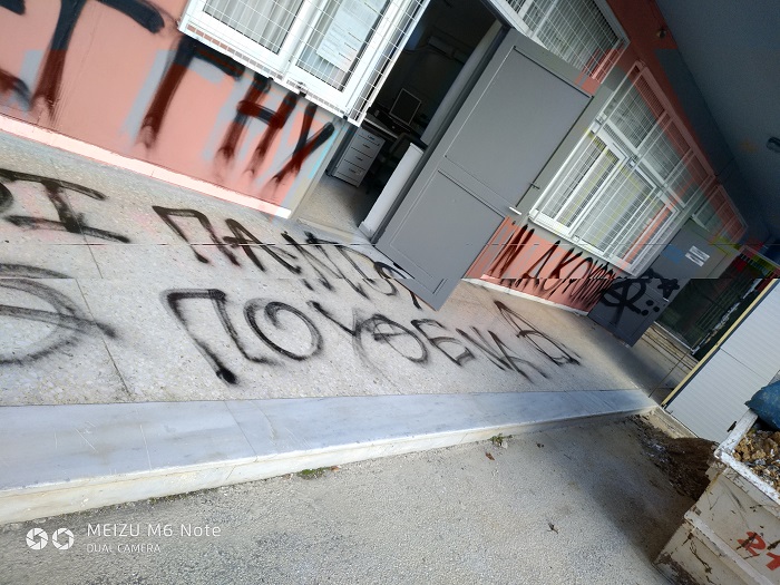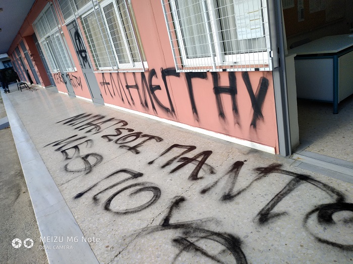 Άγνωστοι, έγραψαν συνθήματα με σπρέι στους τοίχους του ισογείου, καταστρέφοντας ουσιαστικά την πρόσοψη του Λυκείου. Στην εποχή της πανδημίας και της συνεπακόλουθης οικονομικής κρίσης και ενώ οι μαθητές στερούνται λόγω της καραντίνας τη φυσική επαφή με το σχολείο τους, είναι δυνατόν οποιοδήποτε αίτημα, να εκφράζεται μέσω της καταστροφής της δημόσιας περιουσίας, για τη συντήρηση της οποίας ο ίδιος ο ελληνικός λαός πληρώνει από το υστέρημά του;».