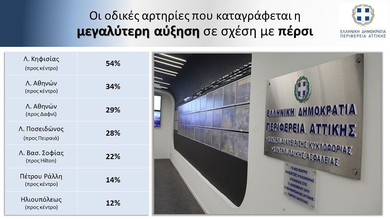 Οι οδικές αρτηρίες όπου καταγράφεται η μεγαλύτερη αύξηση σε σχέση με την αντίστοιχη περίοδο το 2019, είναι οι εξής:
