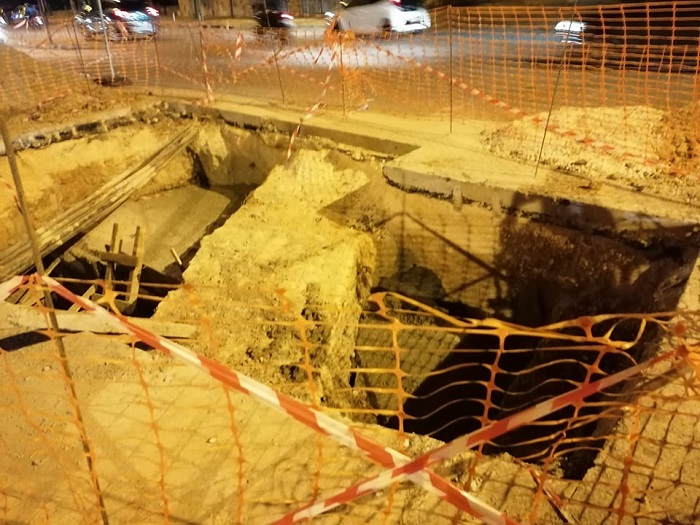 Υπενθυμίζεται πως πριν από περίπου μία εβδομάδα τμήμα του οδοστρώματος είχε υποστεί καθίζηση, εξαιτίας διάτρησης αγωγού απορροής ομβρίων από αγωγούς τηλεφωνικού δικτύου. Ειδικότερα προκλήθηκε σπηλαίωση (μεγάλο κούφωμα κάτω από το οδόστρωμα), η οποία οφειλόταν στο γεγονός ότι κατά το παρελθόν εταιρεία τηλεφωνικών δικτύων είχε διατηρήσει τον πλακοσκεπή αγωγό ομβρίων, με τη μέθοδο της κατευθυνόμενης διάτρησης (χωρίς δηλαδή ανοιχτή διατομή), και δημιούργησε ρήγμα στον αγωγό ομβρίων (παλιό αγωγό κατασκευασμένο από την ΕΥΔΑΠ).
