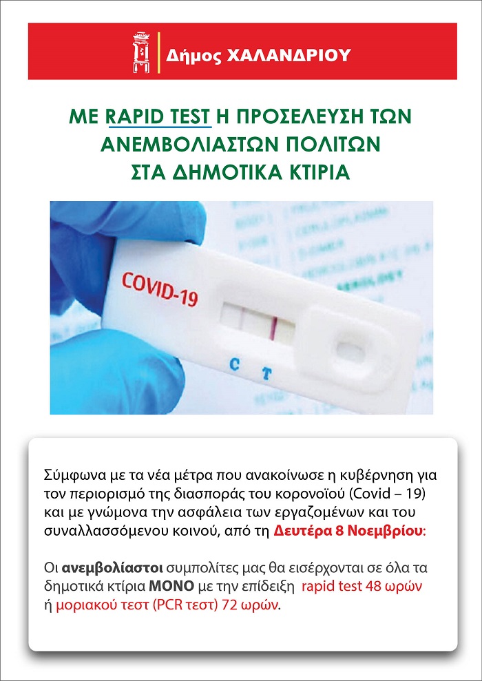 Το κοινό εισέρχεται στις υπηρεσίες του Δήμου Χαλανδρίου κατόπιν υποχρεωτικής επίδειξης κατά την είσοδο: