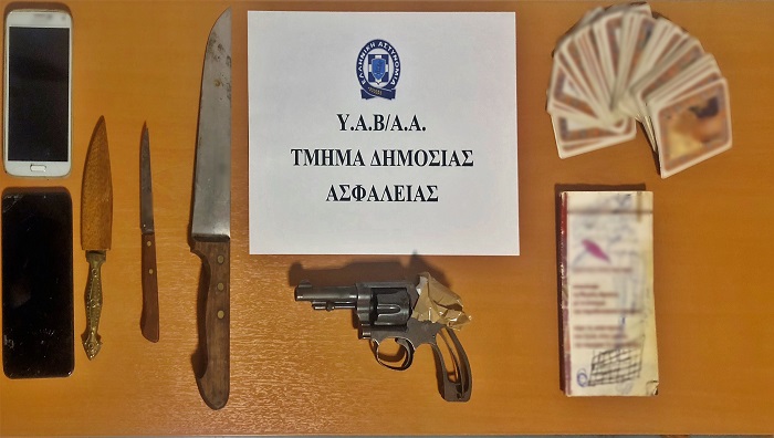 Εντός του οχήματος της κατηγορουμένης, το οποίο βρισκόταν σταθμευμένο έξωθεν της πολυκατοικίας, βρέθηκαν και κατασχέθηκαν, δύο (2) μαχαίρια, ξίφος εντός θήκης, δύο (2) κινητά τηλέφωνα, τράπουλα και εγχειρίδιο.