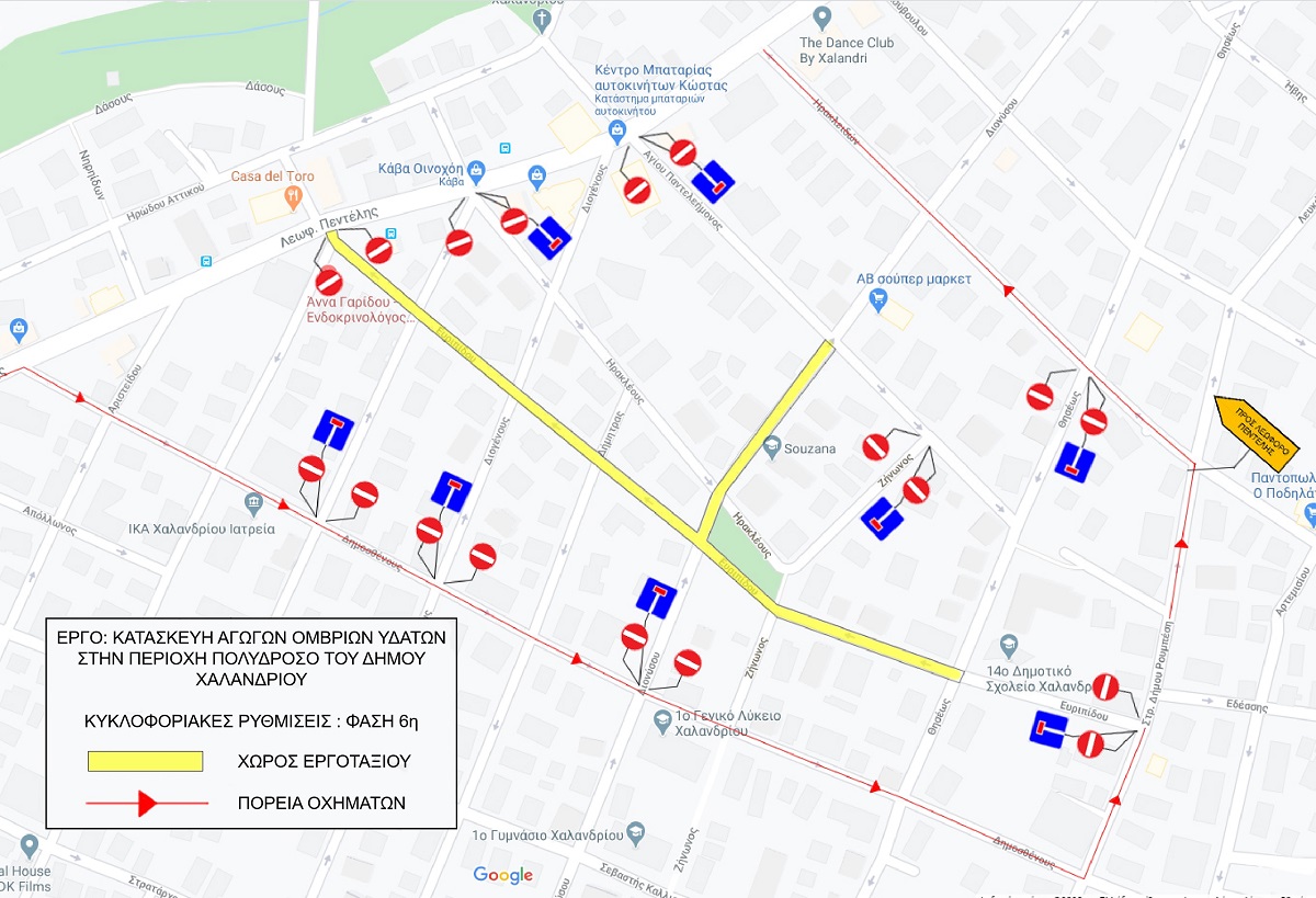 Ο Δήμος Χαλανδρίου ενημερώνει ότι, από τη Δευτέρα 29 Νοεμβρίου 2021 και για χρονικό διάστημα τριών ημερών, η οδός Διονύσου θα είναι κλειστή στο ύψος της οδού Ευριπίδου, λόγω εκτέλεσης εργασιών κατασκευής δικτύου απορροής ομβρίων υδάτων.