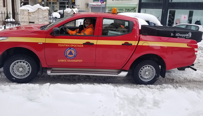 Οι εργαζόμενοι του Δήμου Χαλανδρίου στην Πολιτική Προστασία, την υπηρεσία Πρασίνου και την υπηρεσία Περιβάλλοντος καταβάλλουν υπεράνθρωπες προσπάθειες, από το μεσημέρι της Δευτέρας 24 Ιανουαρίου, να κρατήσουν την πόλη όρθια. Η ένταση της χιονόπτωσης καθιστά το έργο τους εξαιρετικά δύσκολο.
