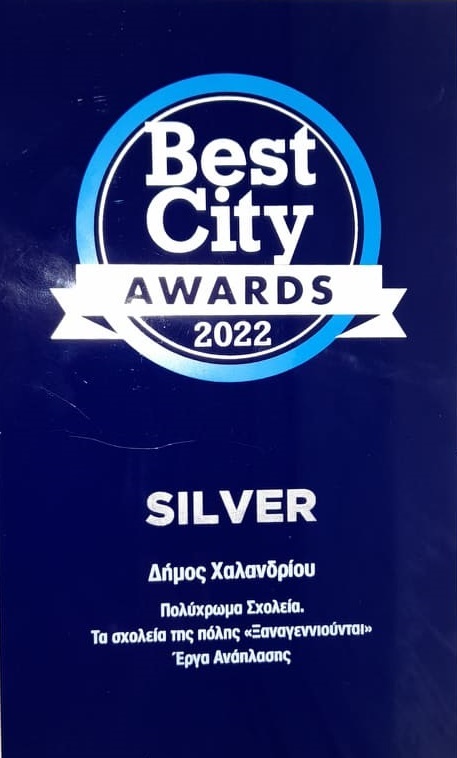 Τα πολύχρωμα σχολεία του Χαλανδρίου, τα οποία έχουν ξαναγεννηθεί μετά από μια σειρά κτιριακών παρεμβάσεων, κατασκευής ραμπών και χώρων υγιεινής και έργων ενεργειακής αναβάθμισης, εξασφάλισαν το «αργυρό» βραβείο στην κατηγορία «Έργα ανάπλασης» της διοργάνωσης Best City Awards.