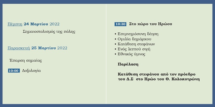 Πρόγραμμα εορτασμού της Εθνικής Επετείου της 25ης Μαρτίου στον Δήμο Χαλανδρίου