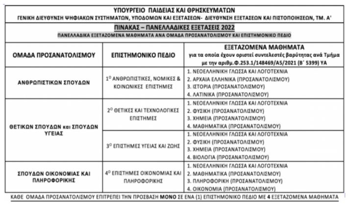 Από τις Πανελλαδικές του 2022 και εφεξής, όσον αφορά στα ειδικά μαθήματα οι υποψήφιοι θα εξετάζονται μόνο στο ειδικό μάθημα «Ελεύθερο Σχέδιο».