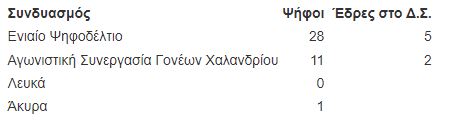 Στις εκλογές συμμετείχαν υποψήφιοι από 2 ψηφοδέλτια και ψήφισαν 40 Αντιπρόσωποι από 22 Σχολεία του Χαλανδρίου.