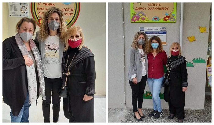 Στελέχη της δημοτικής παράταξης «Χαλάνδρι σε Δράση» με επικεφαλής την υποψήφια δήμαρχο, Κρίστη Αγαπητού, πραγματοποίησαν τη Δευτέρα 4 Απριλίου 2022, περιοδεία στον 4ο, 5ο και 6ο Παιδικό Σταθμό του Δήμου Χαλανδρίου. Κατά την επίσκεψη υπήρξε αναλυτική ενημέρωση από τους υπεύθυνους των Παιδικών Σταθμών για τα θέματα που αντιμετωπίζουν, καθώς και των αναγκαίων παρεμβάσεων που πρέπει να ληφθούν.
