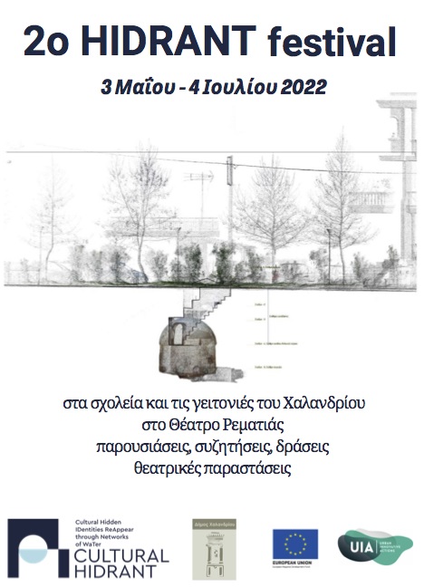 Το HIDRANT festival επιστρέφει για δεύτερη συνεχή χρονιά! Διοργανώνεται στα πλαίσια του προγράμματος αστικής καινοτομίας Cultural H.ID.RA.N.T. και επιχειρεί να καθιερωθεί ως πολιτιστικό γεγονός που γιορτάζει τη σχέση μας με το νερό, το περιβάλλον και την ιστορία του Χαλανδρίου, αλλά και ως συμμετοχικός θεσμός στην πόλη.