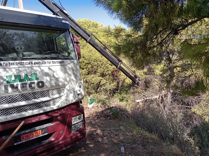 Ομάδα εθελοντών και εργαζομένων του Συνδέσμου για την Προστασία και την Ανάπλαση του Πεντελικού (ΣΠΑΠ) με επικεφαλής τον πρόεδρο του ΣΠΑΠ, αντιδήμαρχο Πεντέλης, αντιπρόεδρο του Εποπτικού Συμβουλίου και της Επιτροπής Πολιτικής Προστασίας της ΚΕΔΕ Βλάσση Σιώμο και ειδικό μηχανολογικό εξοπλισμό, καθάρισε και απομάκρυνε ξερά δέντρα από τη Ρεματιά Πεντέλης - Χαλανδρίου.