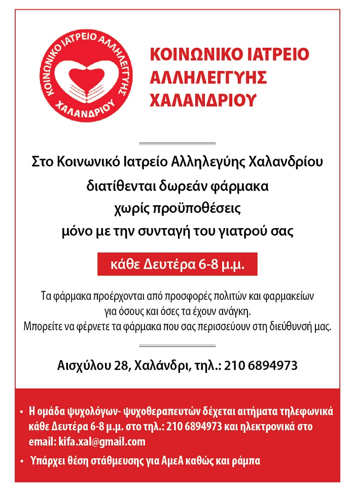 Ενημέρωση από το Κοινωνικό Ιατρείο Αλληλεγγύης Χαλανδρίου: