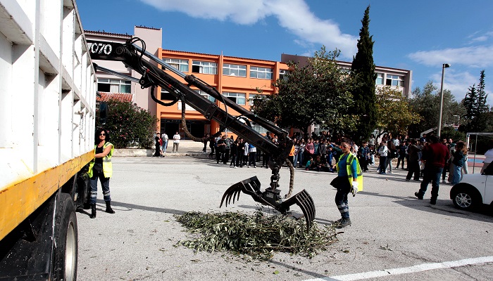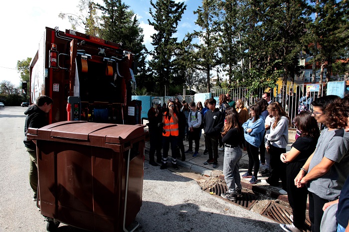 Δήμος Χαλανδρίου: Απορριμματοφόρα, αρπάγες και σάρωθρα επιστρατεύονται στην ενημέρωση των μαθητών για τον καφέ κάδο