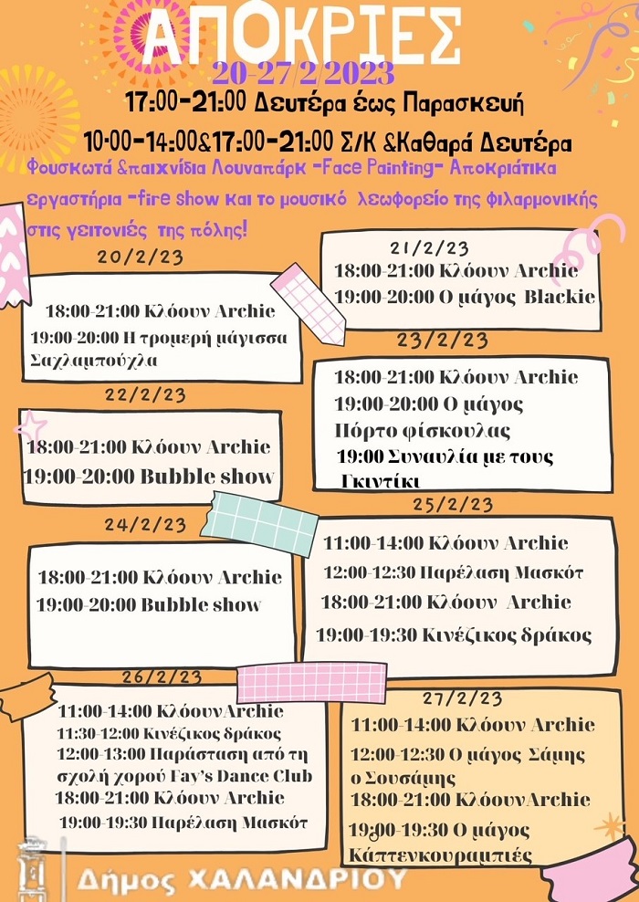 Αποκριά 2023 στον Δήμο Χαλανδρίου: Εκδηλώσεις στην κεντρική πλατεία και τις γειτονιές της πόλης