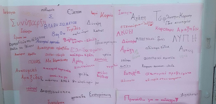 «Η περιέργεια να γνωρίσουν τα εργαλεία αξιοπρέπειας, τις διαφορετικές βλάβες και τους διάσημους ανάπηρους ήταν έντονη. Έκπληξη προκάλεσαν οι απορίες τους όπως: “δεν καταλαβαίνω γιατί η μαμά μου, μου λέει μην κοιτάς όταν βλέπουμε κάποιον ανάπηρο” και “ήσασταν απομονωμένη όταν πηγαίνατε σχολείο;” Φυσικά δεν έλειψε και η γαλαρία που έδωσε τη δική της παρουσία ή μήπως ήταν αμηχανία;», σχολίασε η κ. Γκασούκα.