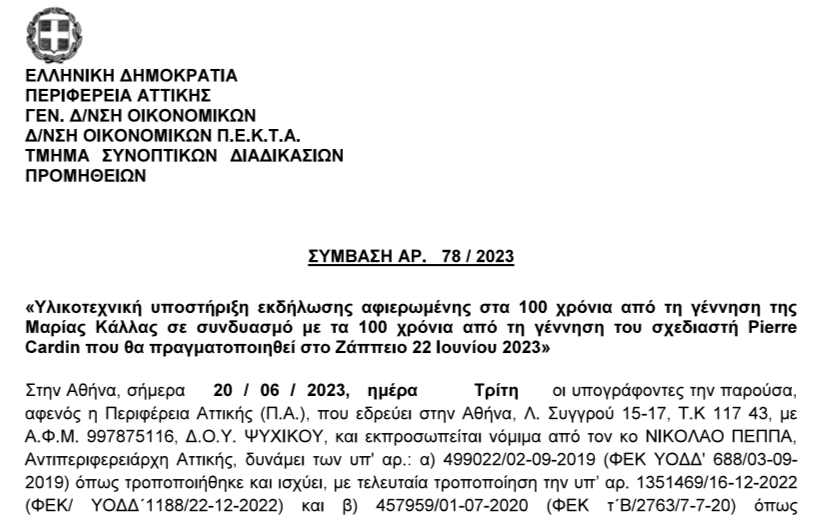 Σφοδρή επίθεση δέχτηκε και πάλι ο Περιφερειάρχης Αττικής κ. Πατούλης από σύσσωμη την αντιπολίτευση καθώς ενέκρινε δαπάνη 28.500 € για την διοργάνωση επίδειξης μόδας του Pierre Cardin.