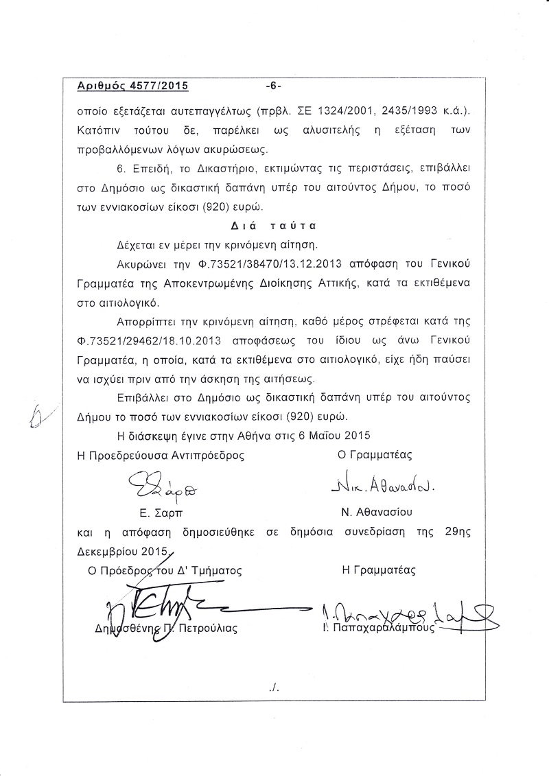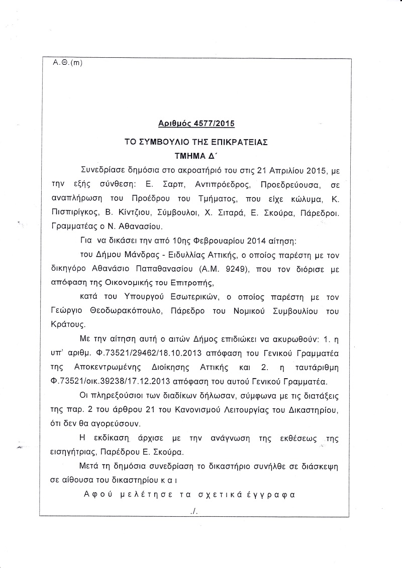 Η υπ' αριθμ. 4577/2015 απόφαση του Συμβουλίου της Επικρατείας: