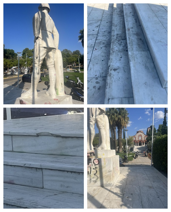 σπασμένα μάρμαρα, τα γκράφιτι για το παρατημένο και βρώμικο Ηρώο μας.