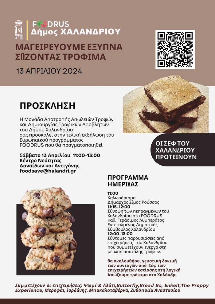 Οι απαντήσεις θα δοθούν το Σάββατο 13 Απριλίου 2024, στις 11:00 π.μ., σε ειδική εκδήλωση στο Κέντρο Νεότητας (Δαναΐδων & Αντιγόνης), όπου θα παρουσιαστούν τα στοιχεία που κατέγραψε η καινοτόμα Μονάδα Αποτροπής Απωλειών Τροφών και Δημιουργίας Τροφικών Αποβλήτων, που δημιούργησε ο Δήμος Χαλανδρίου, από τον Οκτώβριο του 2022.