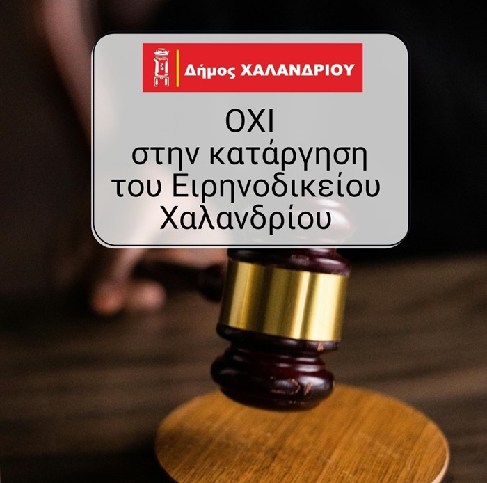 Το Δημοτικό Συμβούλιο θεωρεί ότι η κατάργηση του Ειρηνοδικείου Χαλανδρίου «θα δημιουργήσει σοβαρό πρόβλημα» στους κατοίκους της πόλης και της ευρύτερης περιοχής, καθώς επίσης στον εμπορικό κόσμο και τις δημόσιες υπηρεσίες.
