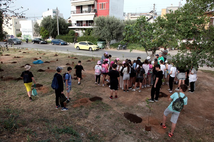 Πολύτιμη, για την υλοποίηση της δράσης, η βοήθεια των μαθητών της ΣΤ’ Δημοτικού, του 4ου Δημοτικού της πόλης. Τα παιδιά παρακολούθησαν με ενδιαφέρον όλη τη διαδικασία και βοήθησαν να φυτευτούν 55 δένδρα (50 λεμονιές, 3 καρυδιές και 2 συκιές).