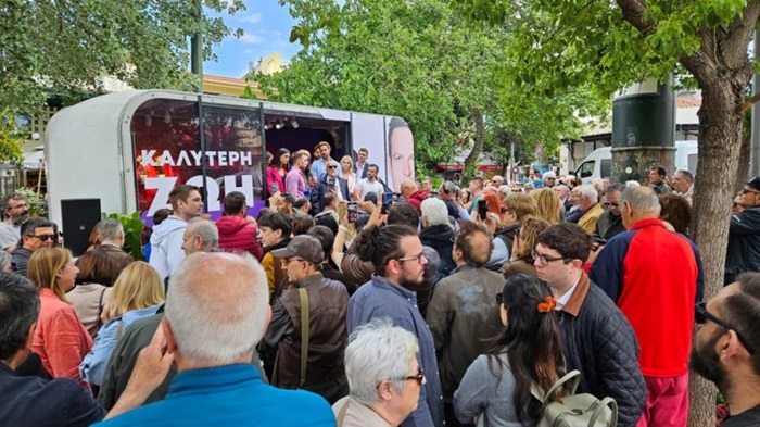 Περιοδεία του Στέφανου Κασσελάκη στο Χαλάνδρι με το τρέιλερ-κινητό στρατηγείο